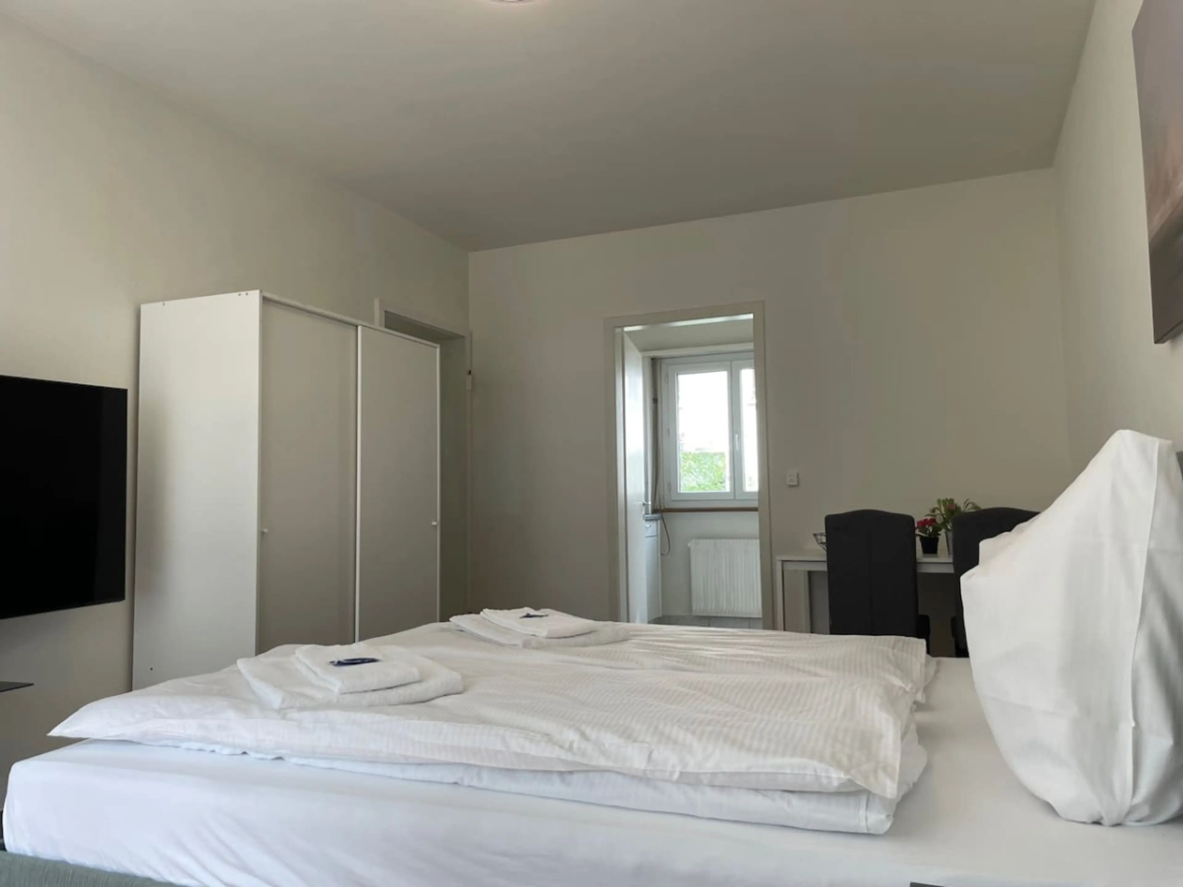 Negative: Bett war viel zu weich, Bad renovierungsbedürftig, TV und WLAN hat erst nach einigen Telefonaten am nächsten Tag funktioniert! Sehr laut und hellhörig vom Hausflur. Die Wasserleitungen pfeifen, wenn der Nachbar duscht!